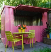 Bar Container XL 3×2 m Rosa RAL 3015 – Modularer Verkaufscontainer mit Klappdach