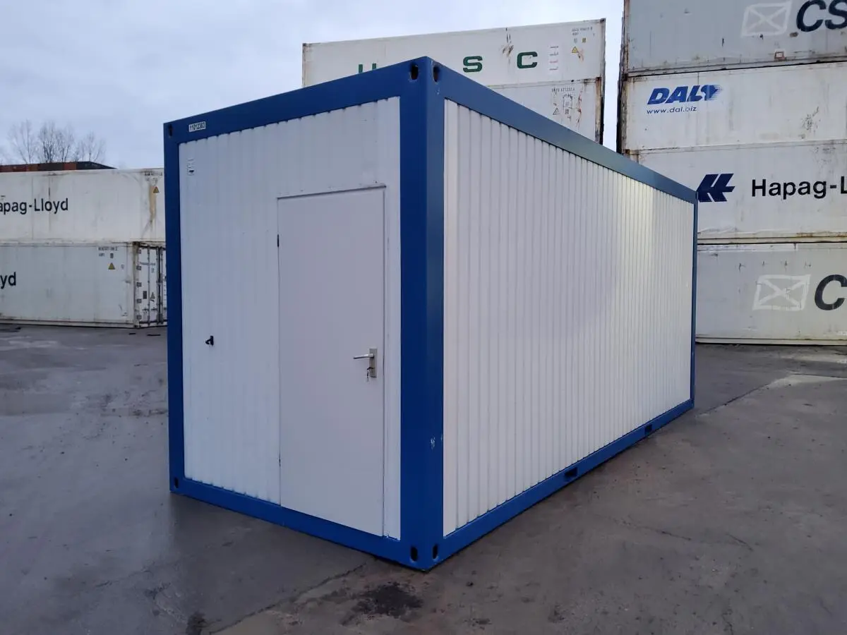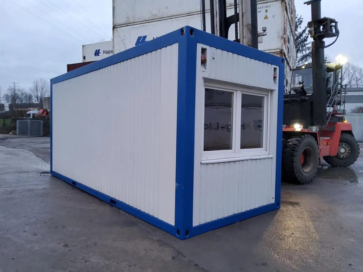 Durch die standardisierte 20-Fuß-Größe lässt sich der Container bei Bedarf mit weiteren Einheiten modular kombinieren, um größere Büroanlagen oder Aufenthaltsbereiche zu realisieren.