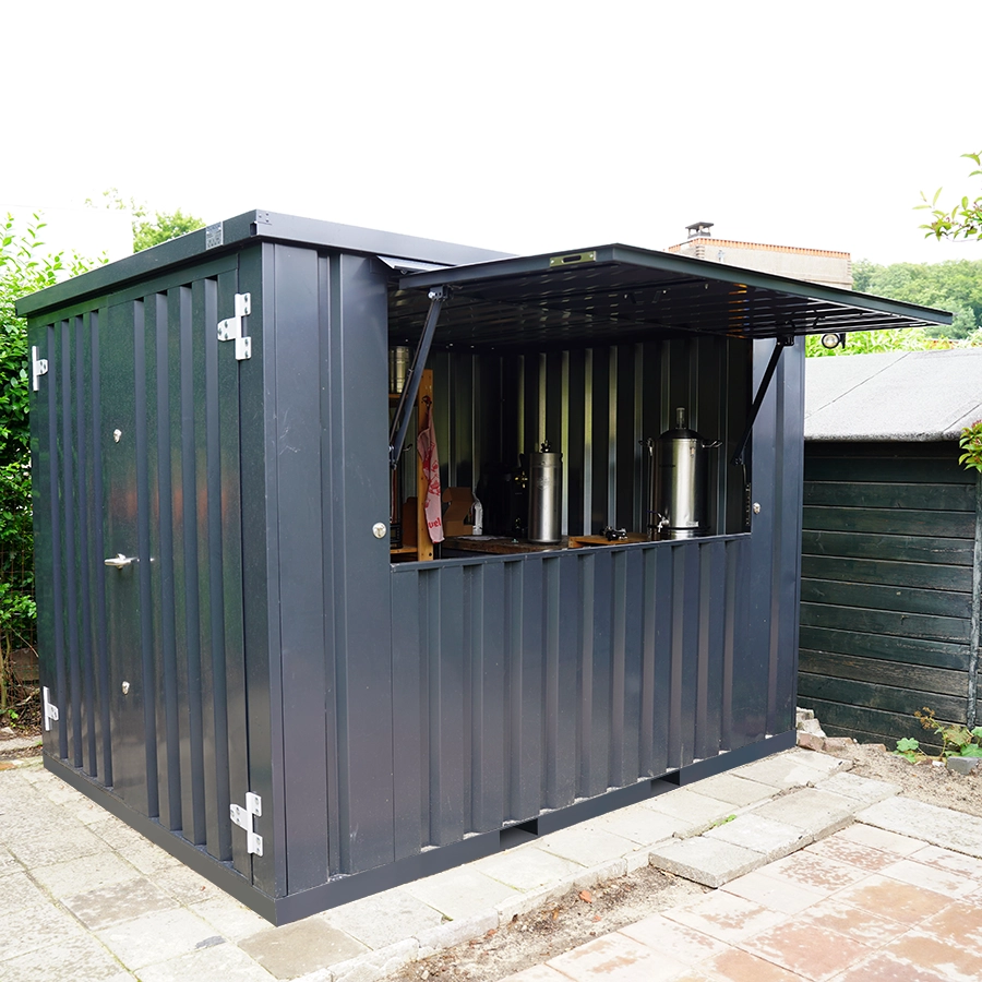 Container Bar 4×2 m RAL 7016 Anthrazit – Zerlegbarer Barcontainer mit Doppeltür und Klappöffnung