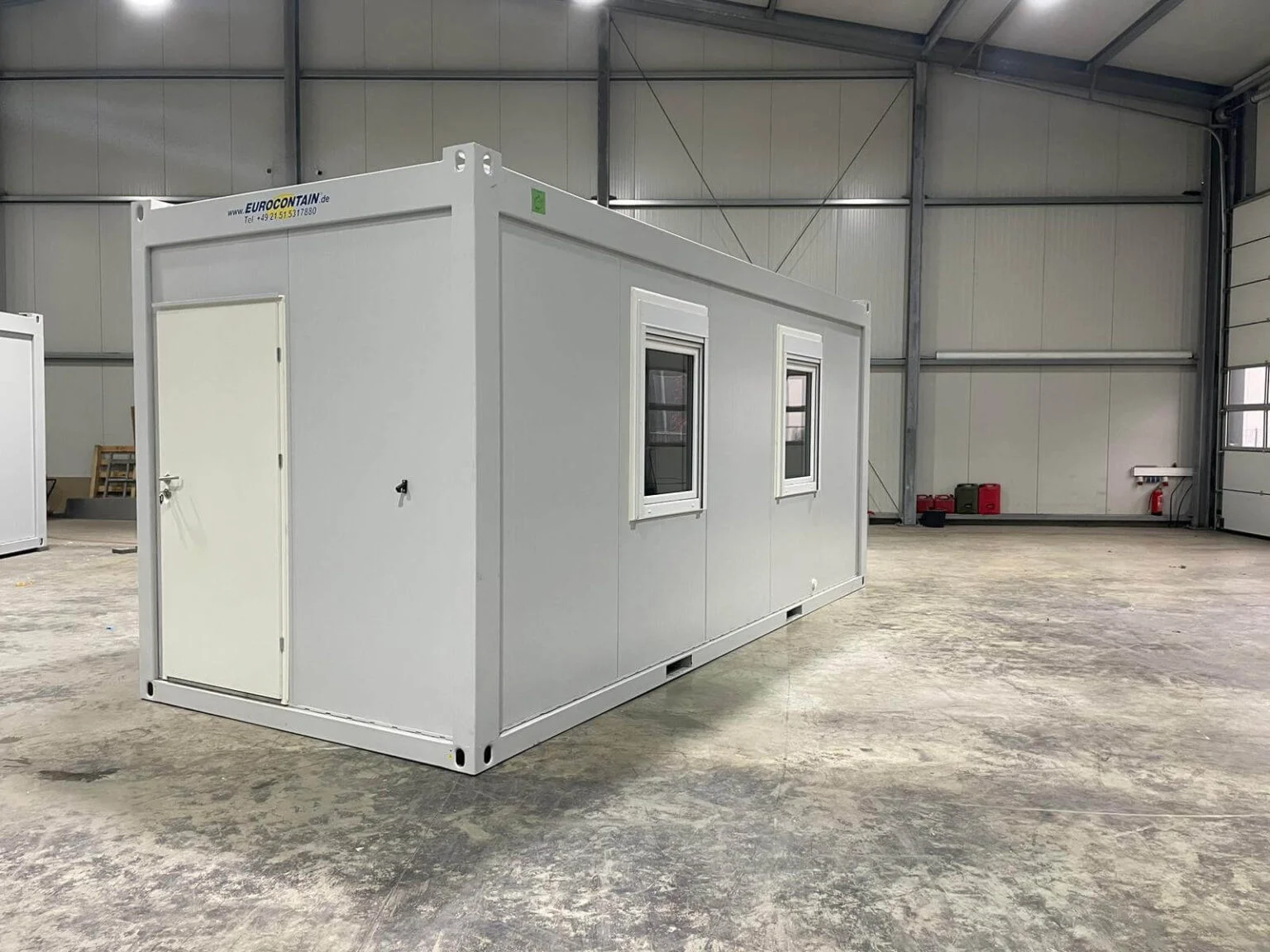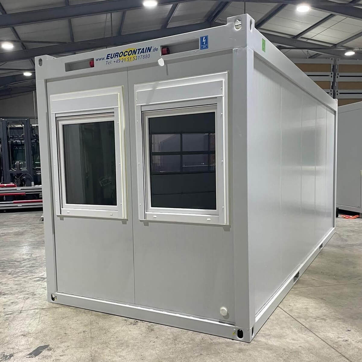 Fabrikneuer 20-Fuß-Bürocontainer, vollisoliert, 2 große Fenster mit Rollladen, E-Heizung 2,3kW, RAL 9002, sofort lieferbar